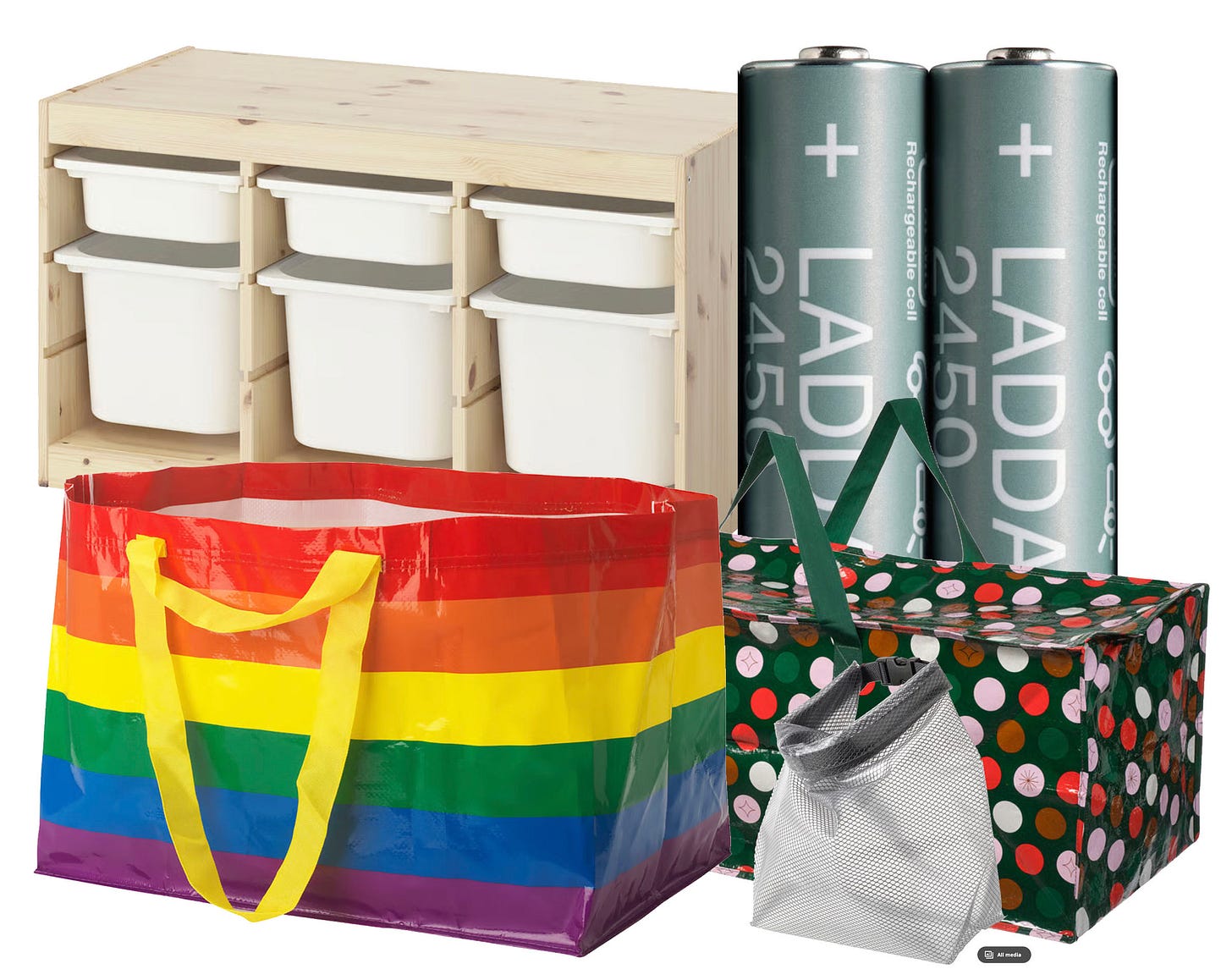STORSTOMMA is my favorite for its rainbow beauty, but if you want to blend in like a lot of black-clad techies, then you might like the GORNSYGG bag for its flat, beige-ness (you’ll pay a $1 premium to be dull). A premium VINTERSMINT bag (under $5) is even bigger and has a zip top. The FRAKTA bag is a 20L option that fits on a cart if you are moving a lot of little pieces to the dive site.